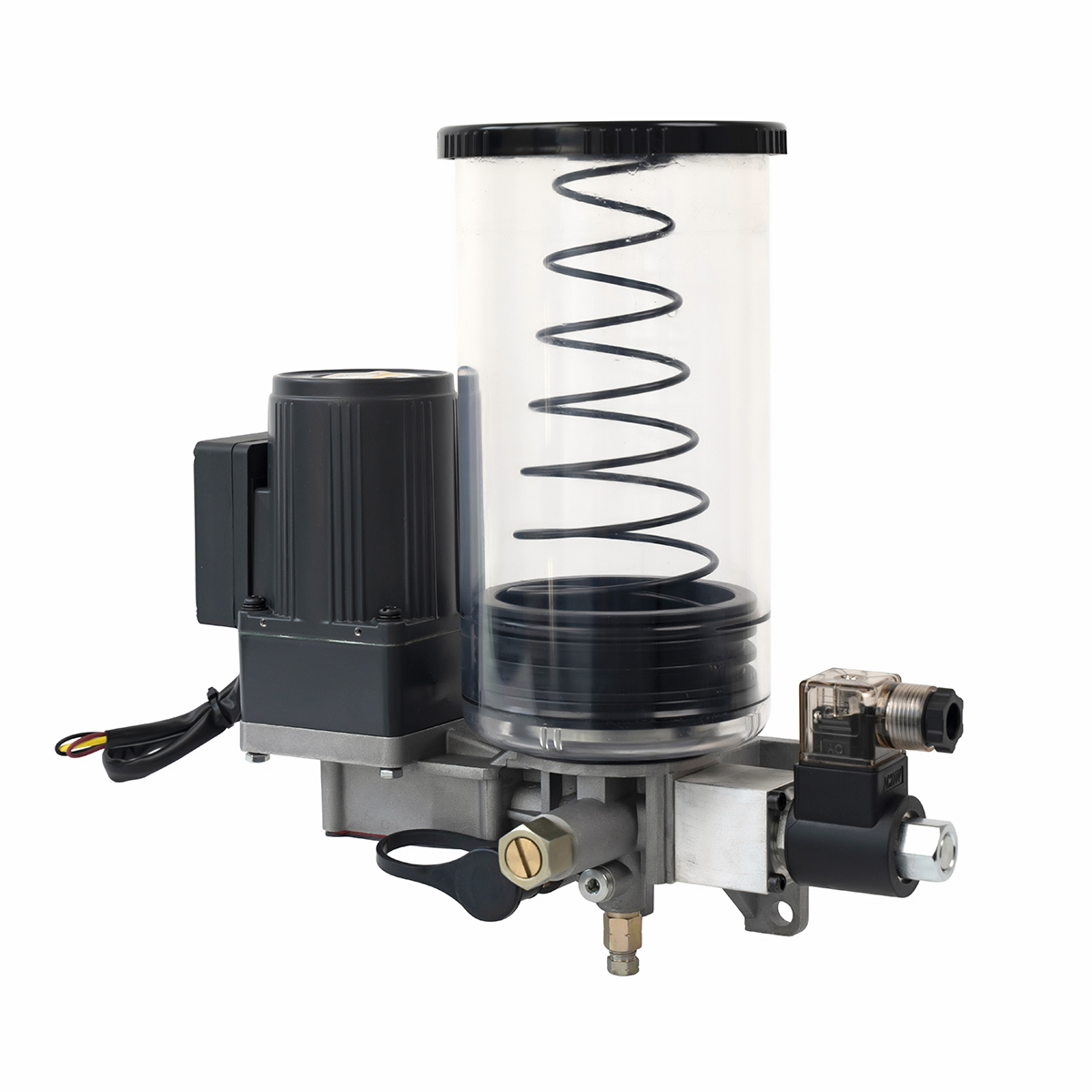 The KG electric lubrication pump is a lubrication pump driven by a small motor, with 1 to 5 oil outlets. This pump can form acentralized lubrication system with distrbutors, etc, to achieve lubrication of multiple lubrication points. -